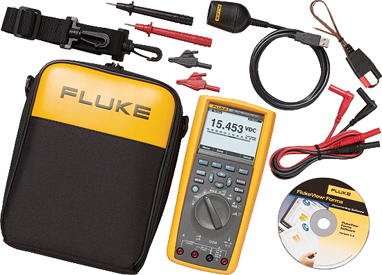 Maximize productivity with the combined Fluke 287 and FlukeView forms combo kit. Designed for today's professionals involved in the R & D, maintenance, manufacture and design of electronic circuits or systems. With built-in data logger and TrendCapture capability, the 287 helps you track down elusive, intermittent problems or monitor equipment with any of its functions. FlukeView Forms enabling you to document store and analyze individual readings or series of measurements, overlay logged data to find cause and effect relationships, or turn your data into meaningful graphs and tables for a professional report. The 287/FVF combo kit gives you a practical & affordable approach to documenting circuit design performance