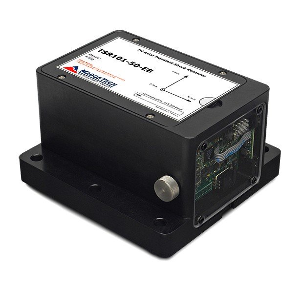 The TSR101-EB is a battery powered, stand alone transient tri-axial shock data logger. The TSR101-EB measures and records data of instantaneous shock levels when the user-selectable shock levels have been exceeded. There are 15 rates to choose from ranging from 1024Hz to 1 Hz. The TSR101-EB is valuable in characterizing environments such as railcar coupling impacts and aircraft turbulence monitoring.